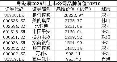 《每日经济新闻》记者基于“2025中国上市公司品牌价值总榜TOP3000”(注:每日经济新闻与清华大学经济管理学院中国企业研究中心联合发布,以下简称“总榜TOP3000”),梳理粤港澳上市公司品牌价值近年来到变化,同时采访厦门大学品牌与广告研究中心主任黄合水进行解读。