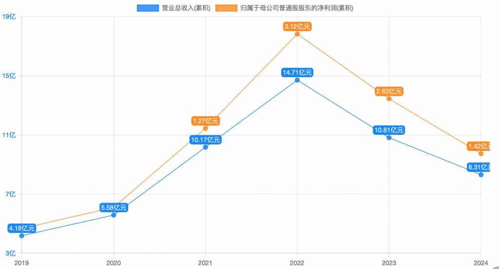 2023 年,公司营业收入由 2022 年的 14.71 亿元降至 10.81 亿元,同比下滑 26.51%,归母净利润同比下滑 15.71%;2024 年形势进一步恶化,营收降至 8.31 亿元,降幅达 23.13%,归母净利润暴跌 45.98%,至 1.42 亿元。