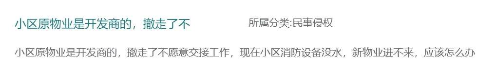 小区原物业是开发商的,撤走了不愿意交接工作,现在小区消防设备没水,新物业进不来,应该怎么办?