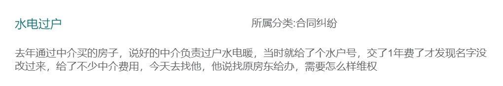 去年通过中介买的房子,说好中介负责过户水电暖,当时就只给了个水费缴费户号。交了1年费了,才发现名字没改过来。给了不少中介费,今天去找中介,他说找原房东给办。我需要怎样维权?