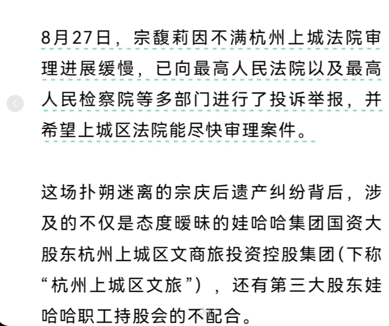 宗馥莉和杜建英的官司陷入僵持!老员工们开始站队了