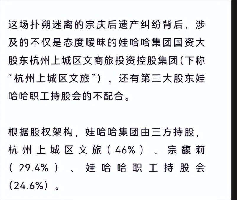 这点就真的匪夷所思了,宗馥莉这么长时间,还没搞定股权的问题吗