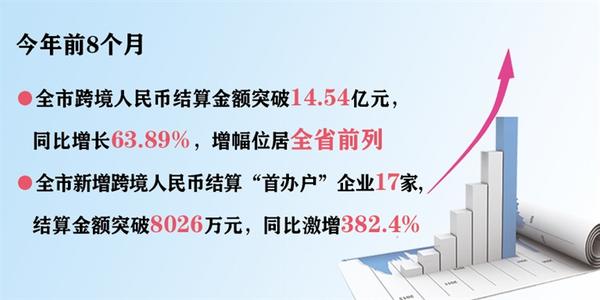 政策红利下,一大批“首办户”企业踊跃加入人民币结算“尝鲜团”。今年前8个月,全市新增跨境人民币结算“首办户”企业17家,结算金额突破8026万元,同比激增382.4%,成为全市跨境人民币业务新的增长引擎。
