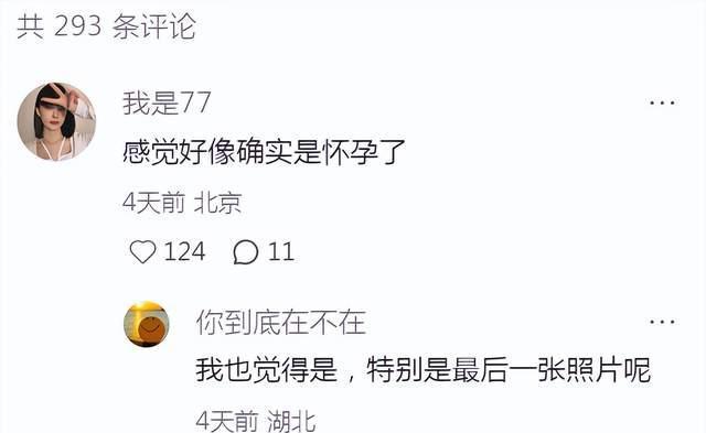 在评论区网友关于程晓玥怀孕的留言已经成为热评,那程晓玥有现身评论区与粉丝们互动,但唯独没有回应这条。要知道以往被传二胎的她都有澄清的,但这次她却没有回应,想来是真的怀了二胎,不过还没过三个月危险期,所以,才没做任何回应。