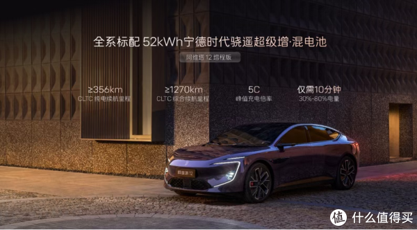增程版标配 52kWh 电池,纯电续航 356km,综合续航 1270km,支持 5C 快充;