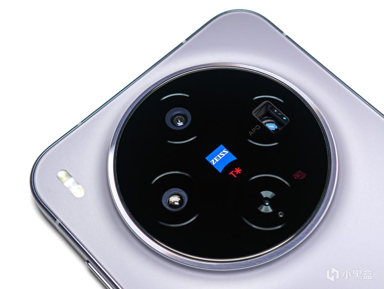 中心蔡司ZEISS小蓝标和红色T*镀膜的字样,右侧潜望长焦镜头边上也隐隐标着蔡司认证的APO字样——通过使用特殊的低色散镜片最大程度地消除色散色差。