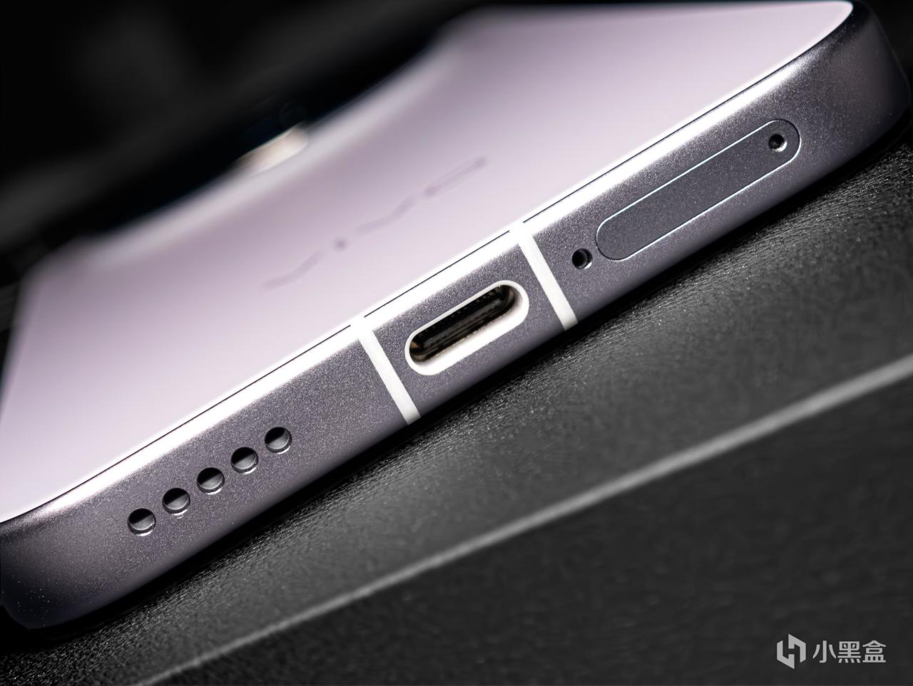 底部开孔基本对齐在了中轴线上,Type-C接口外圈有注塑保护处理,接口两侧有两条天线带。