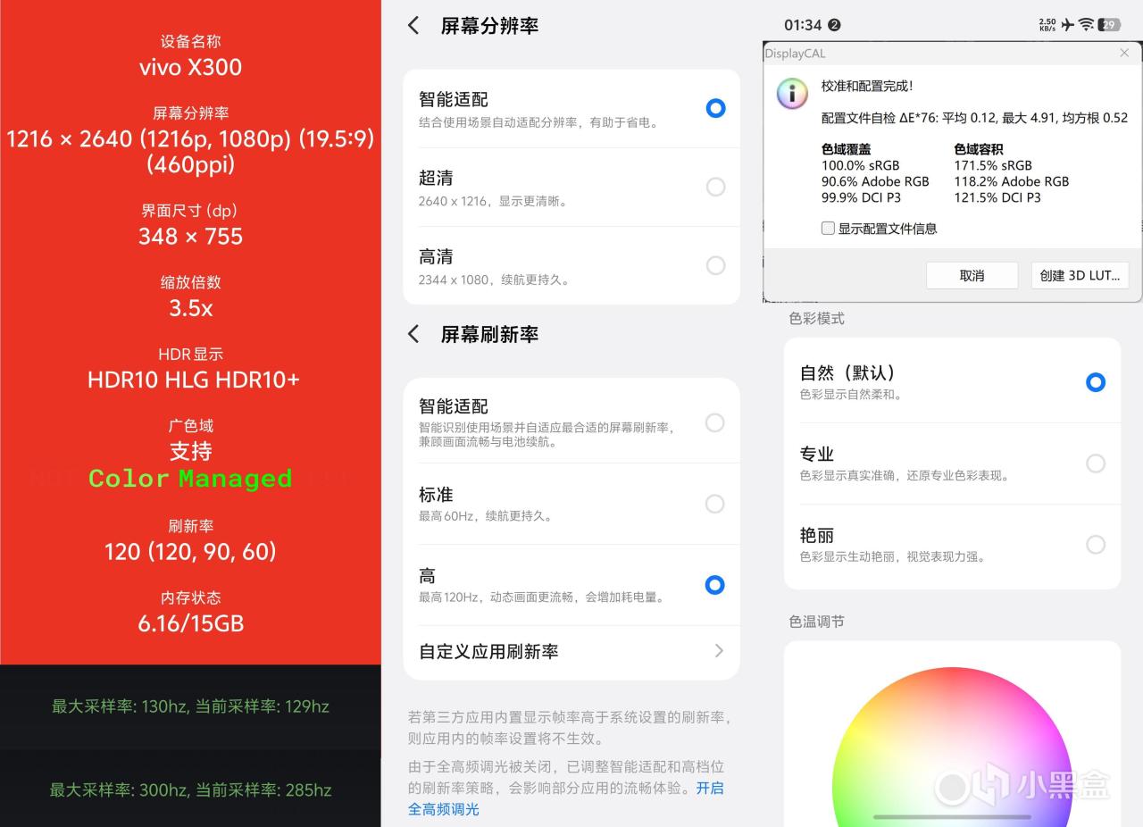 屏幕为LTPO,支持1-120Hz自适应动态刷新率,系统接口映射了60/90/120Hz,可惜是多档位可变刷新率而不是无级可变。