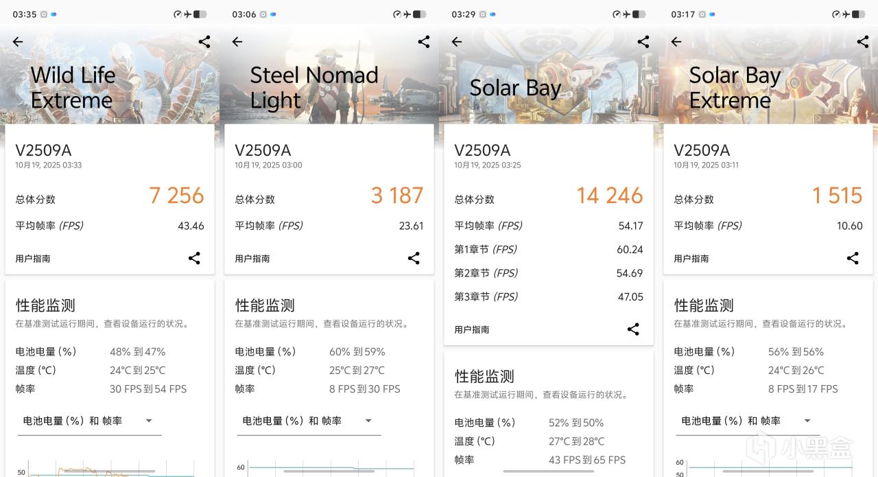 具体对图形性能方面进行3DMark跑分,Wild Life Extreme得分7526,Steel Nomad Light得分3187,Solar Bay得分14246,Solar Bay Extreme得分1515。