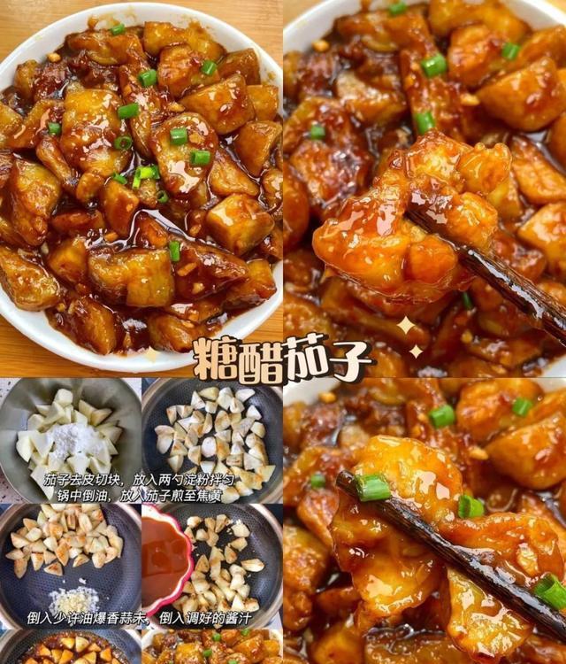 -将茄子去皮切块,放入淀粉拌匀后入锅煎至焦黄。