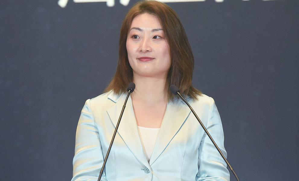 而在颁奖典礼上,父亲宗庆后亲自为她颁奖。