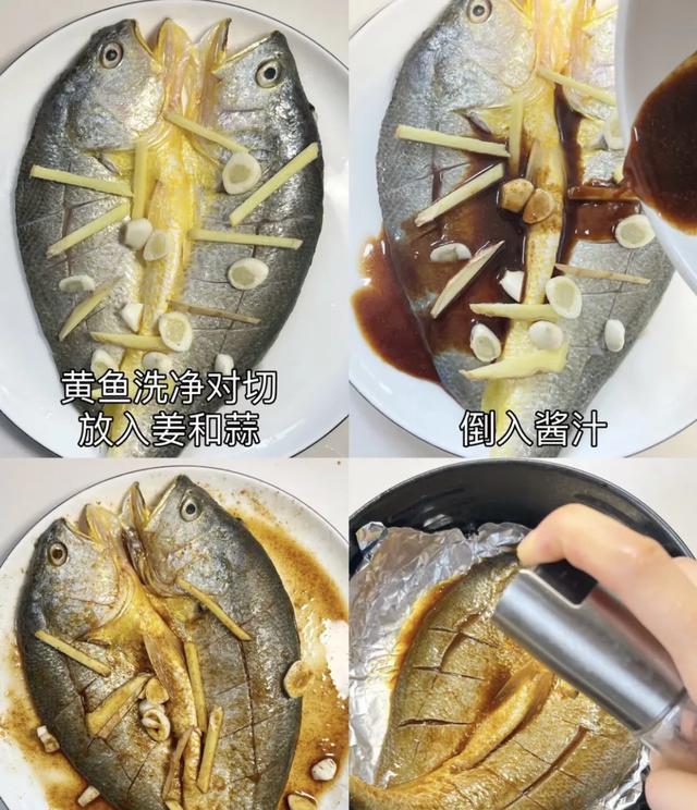 做法:1、黄鱼洗净对切改刀,放入姜片大蒜备用2、调酱汁:一勺辣椒粉、一勺孜然粉、两勺黄酒、一勺生抽、适量白糖和盐