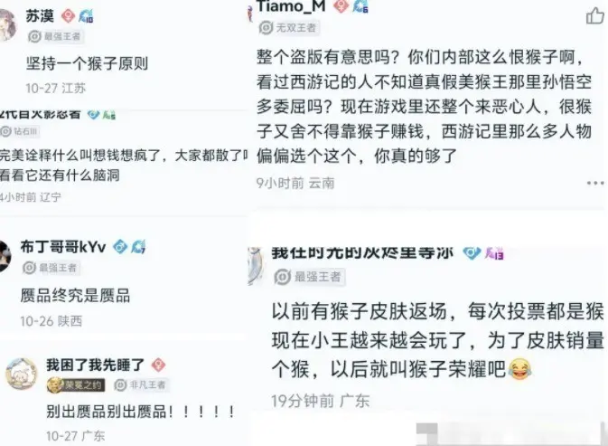 还有玩家指出,如果《王者荣耀》真想打造“文化主题系列”,完全可以选择像沙悟净、哪吒、钟馗这样的角色,更符合传统神话体系,而六耳猕猴虽出自《西游记》,却更多是一个“反面角色”,在文化象征层面上较为模糊,用这样一个角色去代表“中国文化英雄”,未免显得有些牵强。