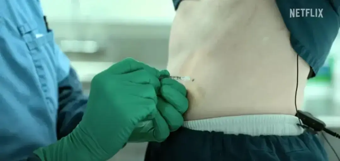 医生在他肚子上、臀部上打了几针,注进去些提取物。