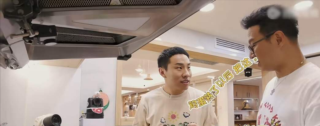 徐志胜执意要做一份粉条炒鸡蛋,汪峰不放心,执意要在旁边指导。