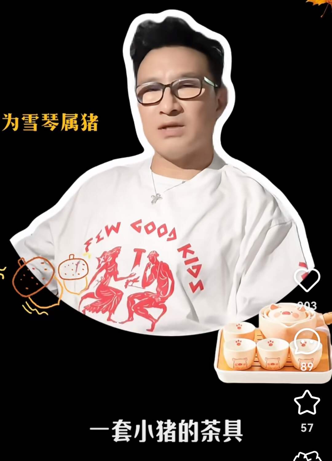 给雪琴准备了一套小猪茶具,因为李雪琴属猪;