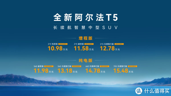 10月28日,“长续航智慧中型SUV”极狐全新阿尔法T5正式上市,包含纯电和增程两种动力形式,共推出7个版型,限时优惠价格10.98万元—15.48万元。