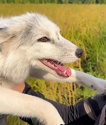 张先生并不在意,每次看到这2只白狐就会主动投喂,久而久之获得了信任,它们会主动靠近张先生,被摸也完全不反抗,甚至跟张先生的狗都搞好了关系!