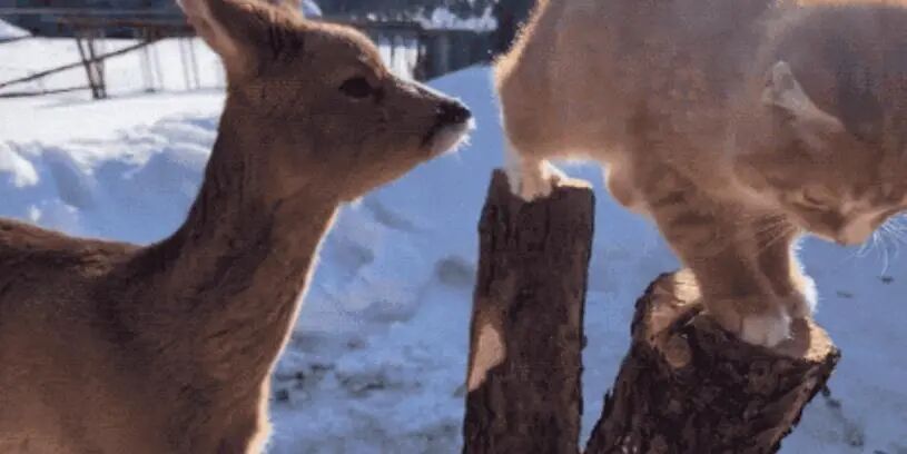 这些狐狸虽然不能跟狗一样真的“认主”,但跟它们建立信任的关系后,依然能相处得非常好。我经常看的一个博主“@林中小呜”,他也是类似的情况,他跟几只野生狍子就建立了相当好的联系,甚至它们的后代都愿意托付给他的级别,连带的这个博主的猫狗跟狍子都打好了关系。