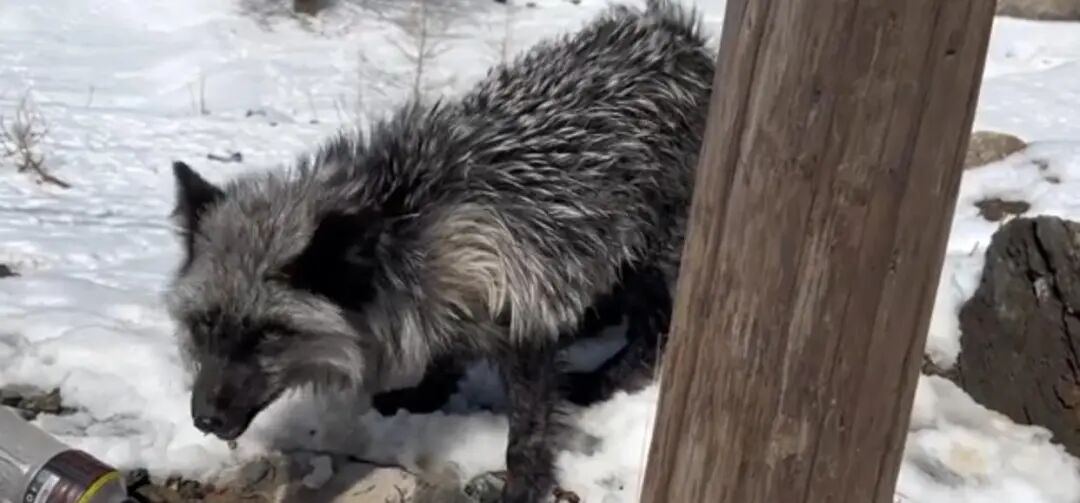 后面还有只本土赤狐也来凑热闹,还有同样是人工养殖后被抛弃的银黑狐来投靠。