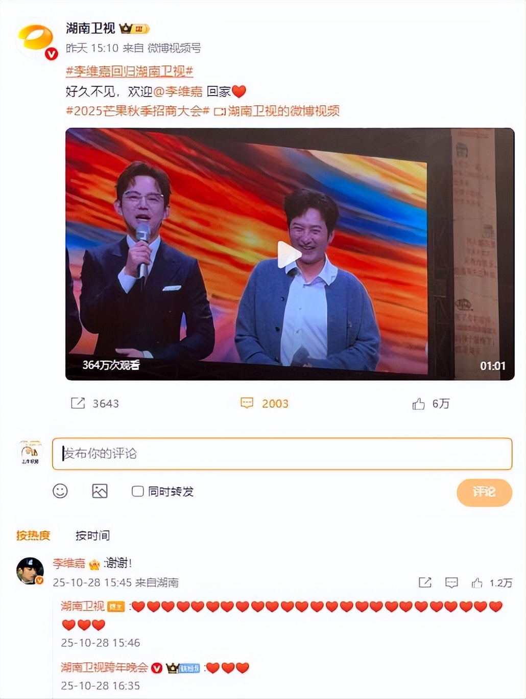 2025年的芒果秋季招商大会,芒果卫视十分“隆重”的迎来了回归的李维嘉。