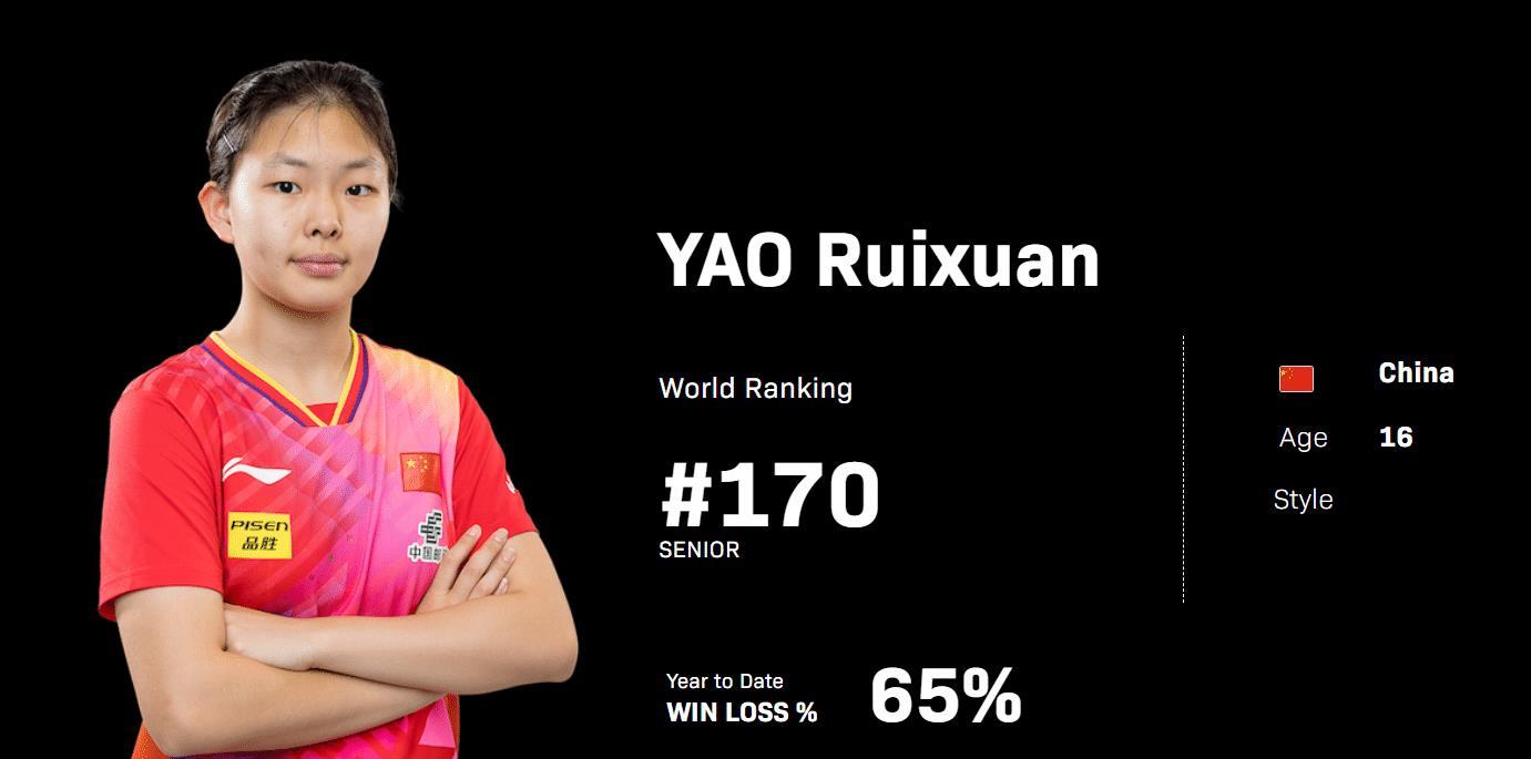 16岁的姚睿轩在成年组的世界排名都已经来到170,她在本次亚洲青年运动会上的表现令人印象深刻: