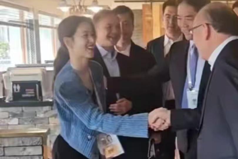 大大方方的和对方交流,握手,动作一气呵成,十分霸气。