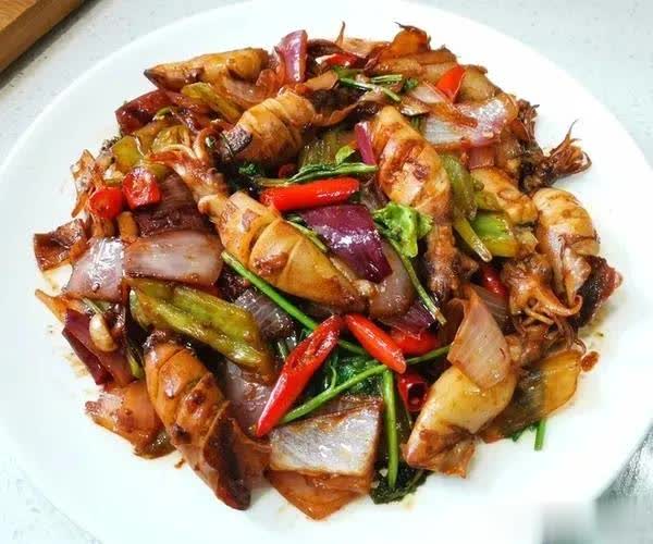 4. 煎海兔:将焯过水的海兔放入锅中,翻炒均匀,煎至表面微微金黄。