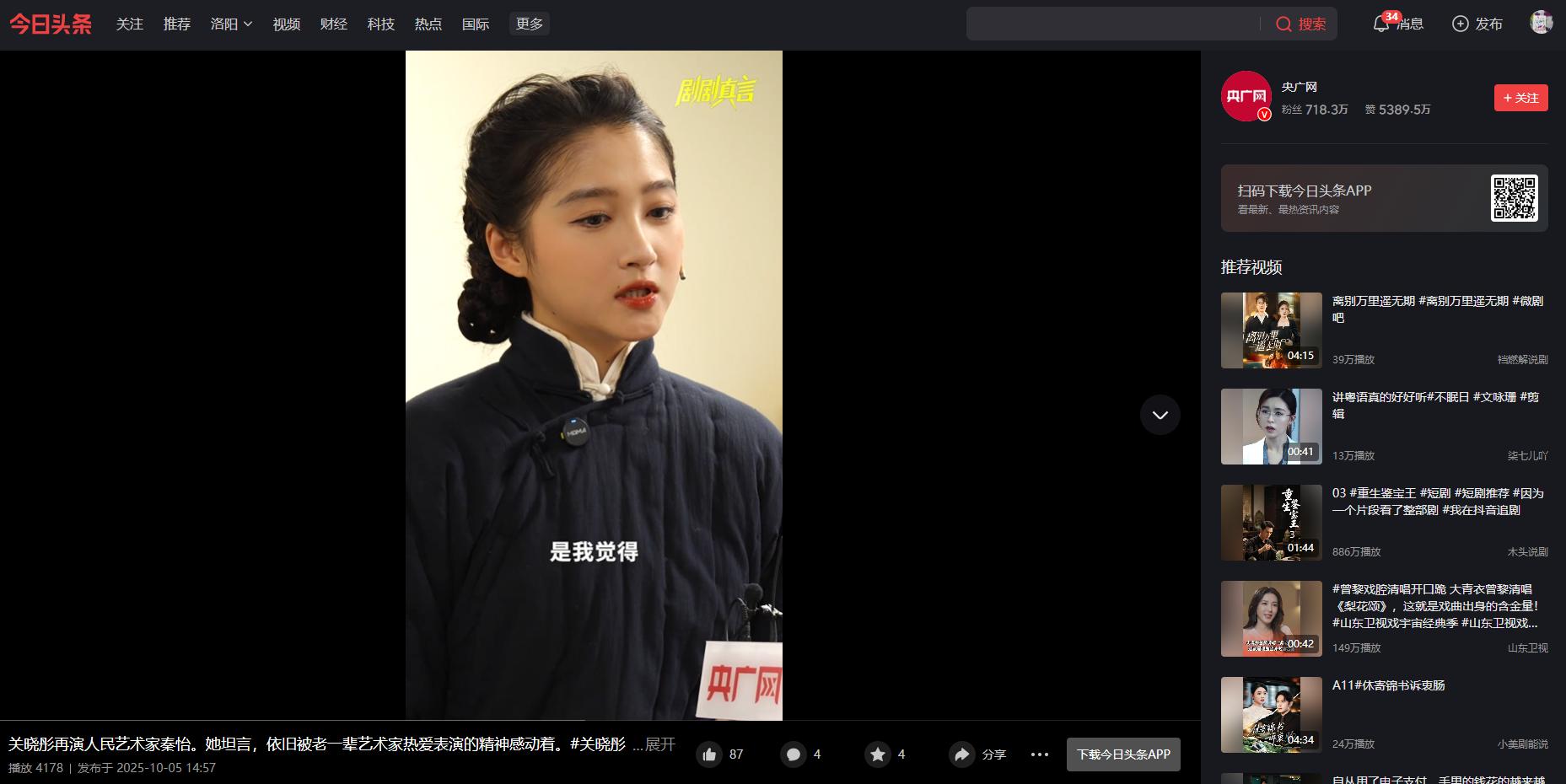 她的表演不仅打动了无数观众,还被央广网特意发文表扬。