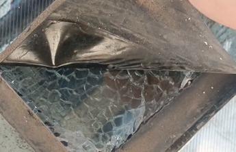 从视频中可以看到,这个玻璃栈道距离地面有相当一段高度,但栈道边的一大块碎玻璃上仅糊了一层薄薄的纸质物遮掩,网友揭开一角后发现,玻璃依然是破碎状态未进行修复。