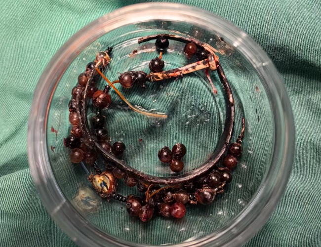 2025年5月16日,湖南常德,一女子因手指被卡紧急求助消防员。经询问得知,这枚戒指已紧紧箍住她的手指长达10天之久。由于长时间的压迫,女子手指严重肿胀。经过消防员的精细操作,最终,戒指被安全取出。
