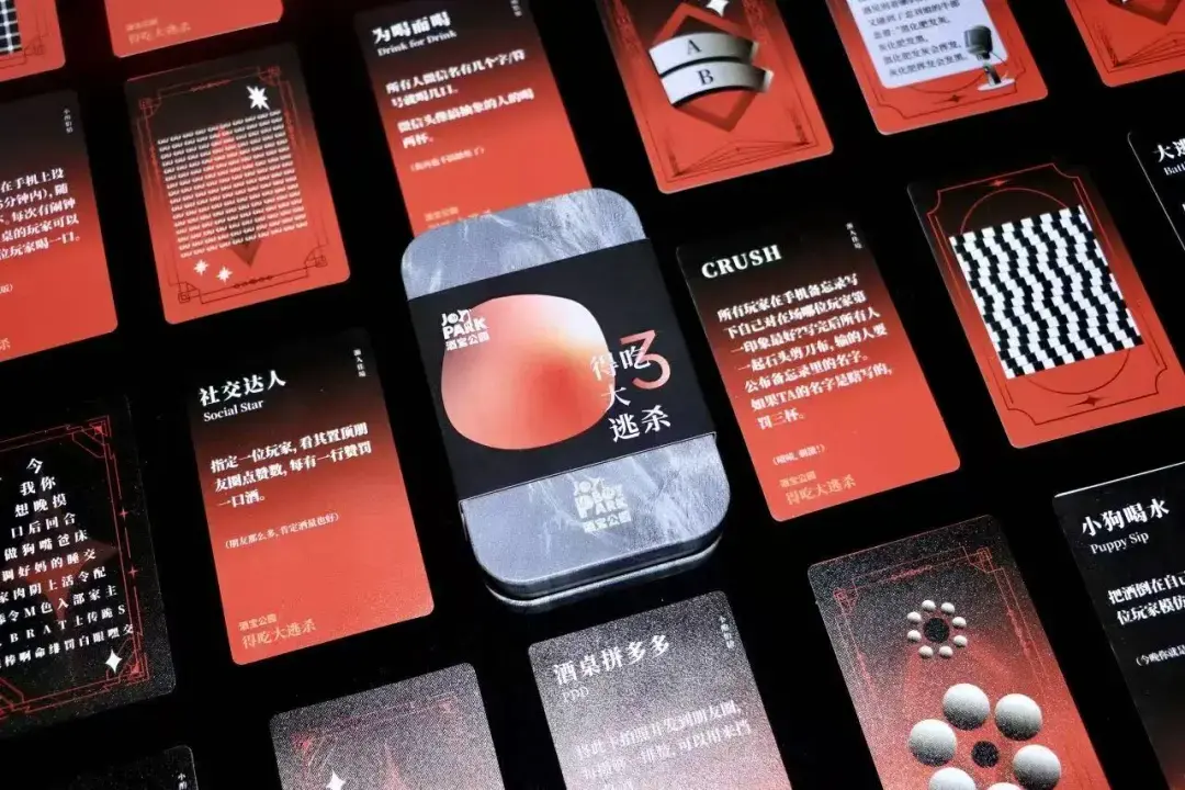 毕业后这四年,我一直在尝试着拓展基于夜生活赛道能做的事。我开发了“得吃大逃杀”这款喝酒桌游,基于我观察到的年轻人社交偏好和亲身体验,去开发出真正能够帮大家破冰的、好玩的喝酒社交游戏——这个在未来还会继续拓展,借鉴泡泡玛特的经验,我能看到有大量有才华的文字博主以及平面设计师缺少长尾的IP收入,我会去跟他们谈版权合作,共创聊天话题和游戏。