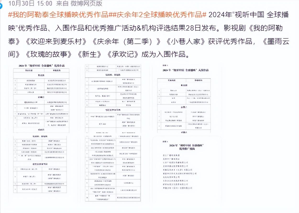 马伊琍最新的一个好消息还得是她主演的《我的阿勒泰》,闯进了国家级的“视听中国·全球播映”项目。
