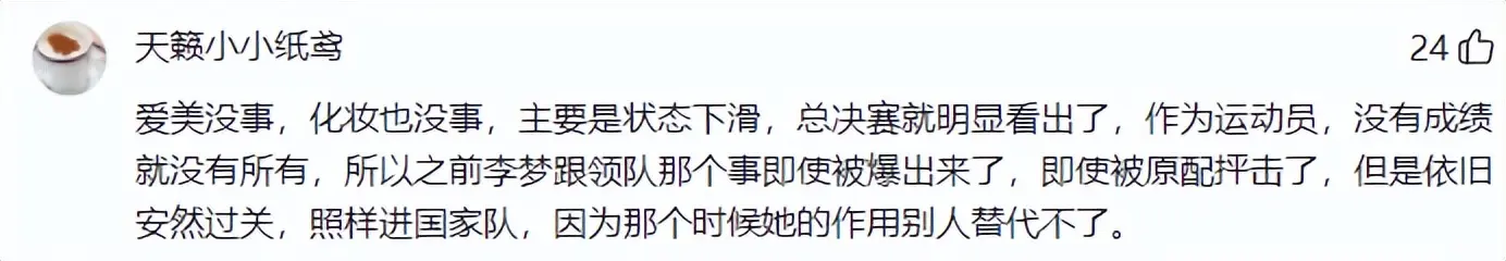 有球迷认为,李梦的问题不仅在于她不听话,更重要的是,她已经走上了下坡路。
