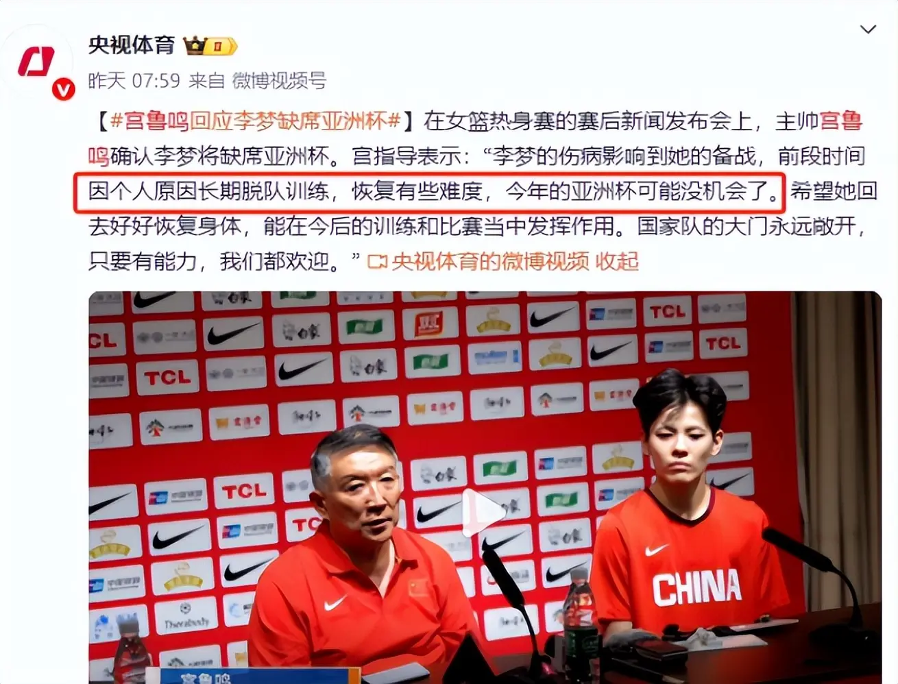 口碑更是一夜之间暴跌,众人对她的评价发生两级反转,可即便已经塌成这样,她在女篮依旧可以正常打球。