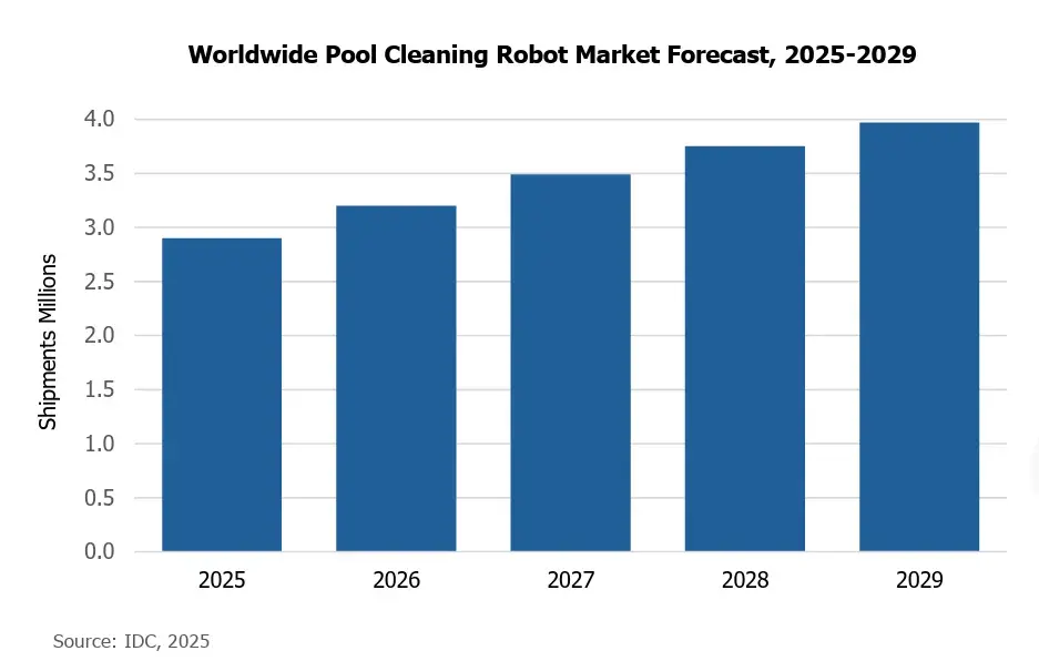 ● IDC预测,到2029年泳池清洁机器人的全球出货量将突破397万台