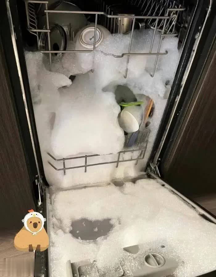 网友分享,家人为了省耗材,往洗碗机里倒普通洗洁精,直接把机器 “搞废” 了,最后只能回归手洗,几千块的电器成了摆设。