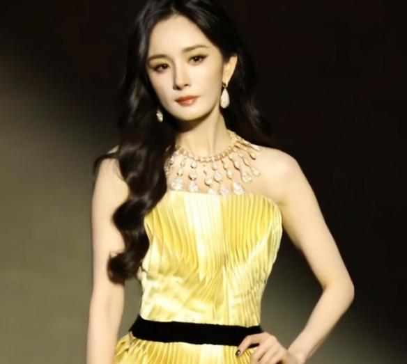 大幂幂的装扮也是让人眼前一亮,一条黄色长裙,上面还有着三条黑条条,