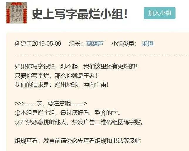 是的,朋友们,这里咱们聊的就是豆瓣上的某个抽象小组——史上写字最烂小组。