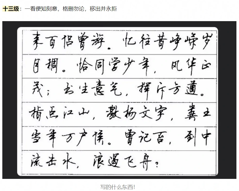 只不过在大多情况下,这一等级到12级就封顶了......因为能写出13级书法的成员,已经被永久踢出小组了。