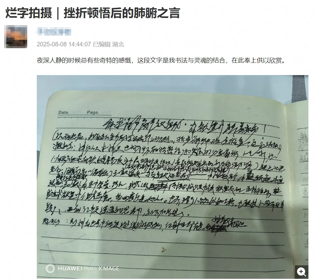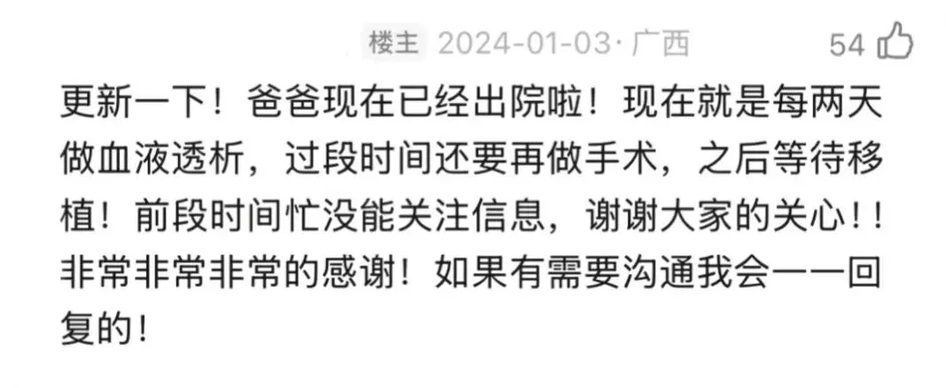 更加幸运的是,在这名求助者后续的帖子里,其父亲写出来的文字越来越清晰,状态明显好转。