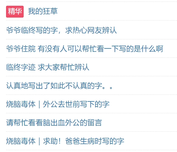 “烂字小组”中类似的求助,也不仅仅局限于辨别亲人生前的文字。