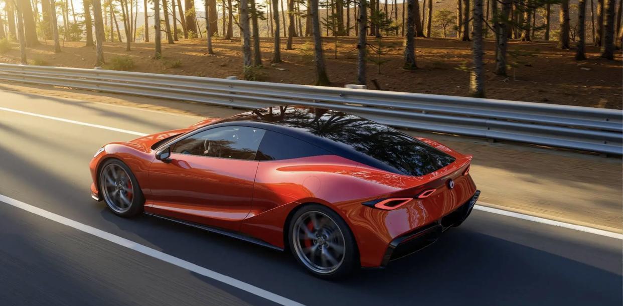 腾势Z敞篷版的车头十分宽扁,与之前在上海车展亮相的腾势Z量产版保持一致,都还原了概念车的设计精髓,似乎与路特斯Evija也有着异曲同工之妙。中间舱盖扁平,两侧灯眉高耸,封闭式的前鼻翼上方还配备了醒目的腾势车标,前包围采用了造型夸张且符合空气动力学效能的大尺寸孔洞设计,还配备了黑色碳纤维材质的大尺寸前铲,并加入了橙色的描边设计,展现出了很强的攻击性。车尾可以选装固定式赛车大尾翼,底部配备了大尺寸碳纤维底部扩散器,也同样加入了橙色的描边,呼应了车头,散发出更强的赛车气息。水滴形的前大灯采用了嵌入式设计,“一大一小”四组菱形块组成的尾灯,都让整车更有科技感。