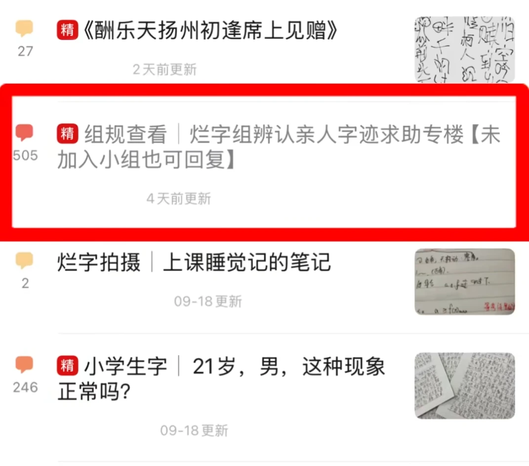 所以后续的类似求助帖,都被划归到了专门帖子里头,用来平衡“烂字小组”的性质以及他人需要。