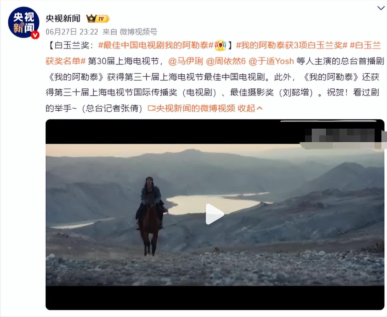 马伊琍最新的一个好消息还得是她主演的《我的阿勒泰》,闯进了国家级的“视听中国·全球播映”项目。