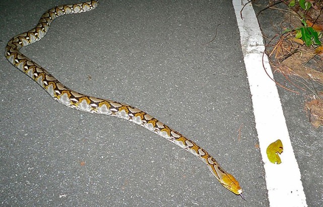 简单地说,我们怕它,它也怕我们,而且我们对它们的伤害是显而易见的,由于它们的蛇皮十分珍贵,经常被捕杀,加上栖息地的开发,它们的数量在最近10年内减少了80%以上。
