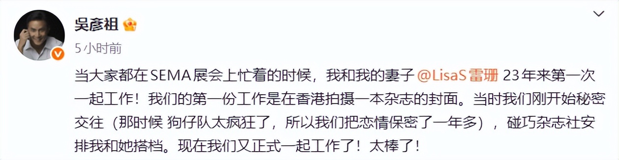 11月6号下午两点,吴彦祖突然在微博晒出和老婆Lisa的合照,评论区直接炸锅。