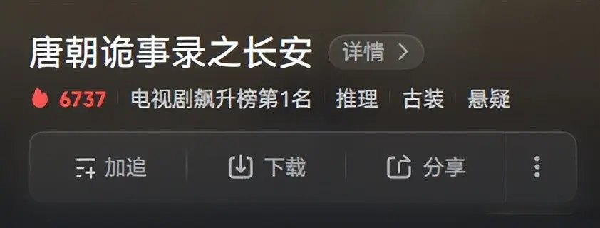 《唐诡3》首播6集,热度一小时内就破了6000,直接在电视剧飙升榜排名第一。截止发稿时间,热度已经破了7500.