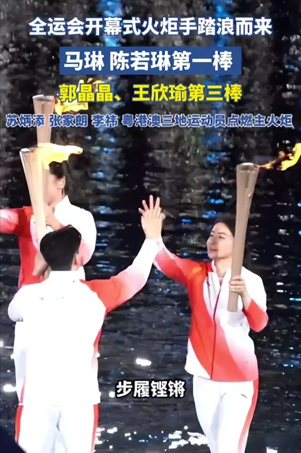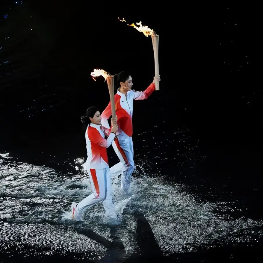 在此次全运会火炬传递中,郭晶晶站在浅水中高举火炬的画面令人动容。