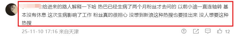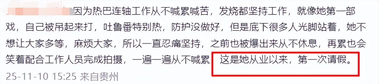有粉丝透露,这是迪丽热巴出道以来第一次因为身体健康原因请假,无法拍戏。